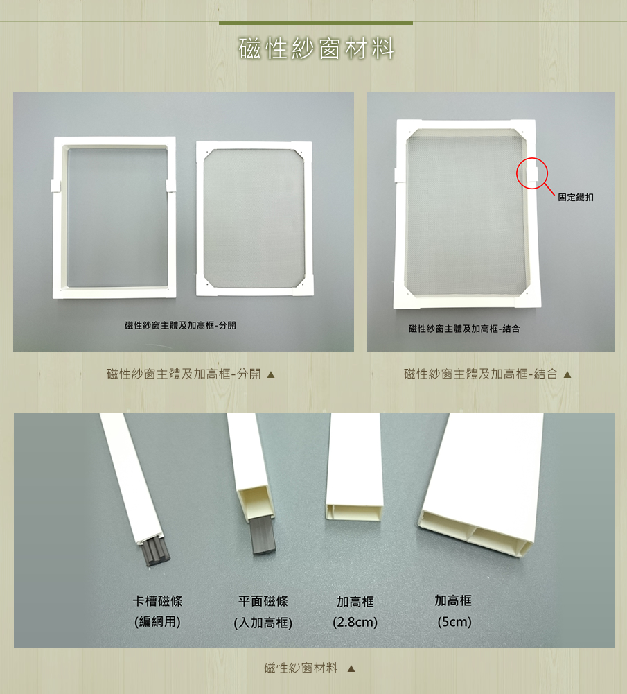 磁性紗窗規格表及解說圖