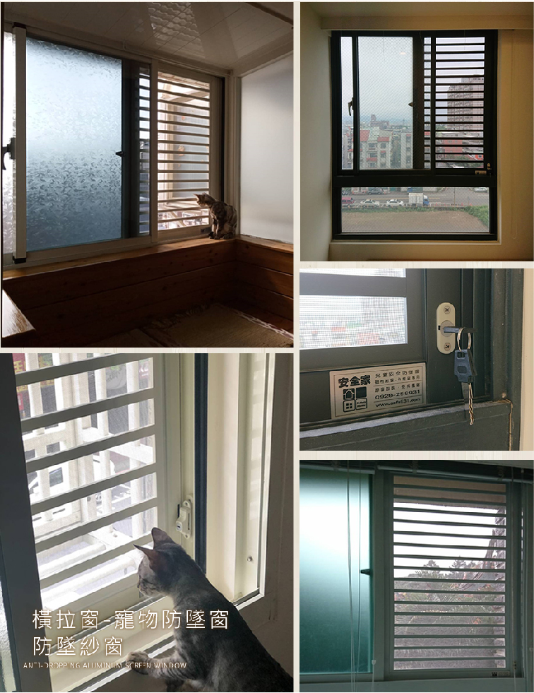 鋁格紗窗|貓咪防墜橫拉窗